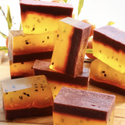 Pique a base glicerinada branca em cubos, coloque na panela esmaltada e leve a fonte de calor, assim que estiver derretida retire do fogo. Acrescente todo o material solicitado para a camada branca, misture bem e reserve.