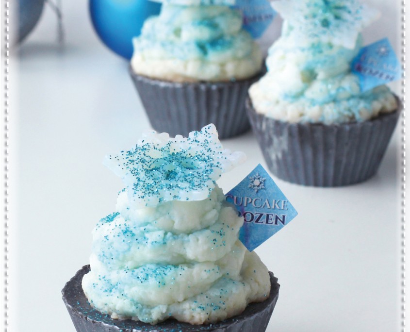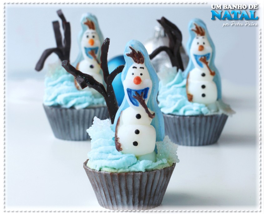 Posicione as bases (muffins) em cima de um celofane e confeite um a um com o chantilly, de maneira