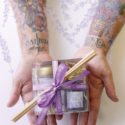 Sabonete artesanal, sais de banho e mini difusor de aromas com varetas. Escolhemos o óleo de semente de uva como ativo para o sabonete, garantindo hidratação com leveza. Na combinação de essências você irá encontrar 50% de Lavanda Francesa e 50% de Chá Branco para paz e harmonia no seu ritual.