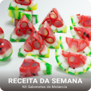 O Kit de Sabonetes de Melancia traz todas as matérias primas necessárias para que você crie sabonetes de melancia incríveis! Com este kit você conseguirá produzir 14 lindos sabonetes, sendo eles: 8 fatias de sabonete em barra, 4 fatias de meia esfera e 2 esferas de melancia.