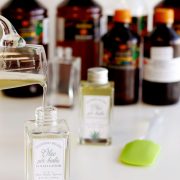 Meça as propriedades solicitadas no becker, e coloque no frasco um a um. É importante lembrar que esta receita deve ser feita um frasco de cada vez por conta da densidade de cada óleo.
