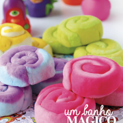 Repita o mesmo processo com a outra parte, se desejar que a seja colorida também. Agora com as duas partes prontas, você pode modelar misturando as cores e obtendo formatos diferentes. Para este formato da foto, foi feito dois rolinhos de massa, uma de cada cor, em seguida unidas as duas foi esticada a massa rolando sobre a bancada e ficando com aproximadamente 40cm. Feito isso, enrole fazendo um espiral pressionando as laterais para aderir e está pronto.