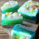 Na receita do sabonete D’alma Limpa, utilize 10 colheres de sal fino. Nessa técnica, após incluir todas as propriedades no sabonete, jogue na bacia plástica e espatule até que fique em um ponto um pouco mais grosso, neste momento despeje o sal, mas não a ponto de dissolver. Neste ponto despeje na forma e desta forma conseguirá este efeito rústico e cheio de buracos como um queijo.