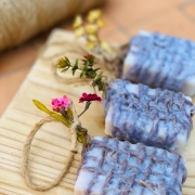 Feita a trama, despeje a base glicerinada em uma pote plástico que caiba a barra dentro, segure o sabonete pela alça e banhe ele algumas vezes na base glicerinada, posicione ele em cima da bancada e faça o mesmo processo com as outras barras de sabonete, se precisar repita algumas vezes o banho em cada barra e esta finalizado. Espere esfriar e solidificar. Tire as rebarbas, decorre com alguns elementos e esta pronto!