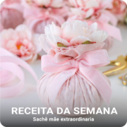 Para dar um charme a mais ao produto com auxílio da cola quente, colamos bem ao centro do sachê uma Rosa Alberic da cor rosa e branca, na parte de cima. Fará toda a diferença para deixar os sachês com um acabamento delicado e charmoso.