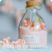Pegue o vidro, já higienizado, e adicione os sais de banho com o auxílio de um funil, complete o vidro deixando um espaço para decorar com algumas flores. Finalize amarrando um fio encerado na boca do frasco.