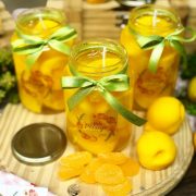 Esta receita rende 2 compotas, com 8 pêssegos cada.
